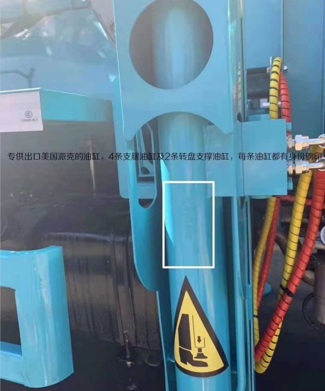 4、液壓支腿,H型液壓支腿加前液壓支腿 ,二節(jié)水平支腿跨距大,穩(wěn)定性好,可同時(shí)或單獨(dú)操作,前支腿加強(qiáng)了車輛的穩(wěn)定性