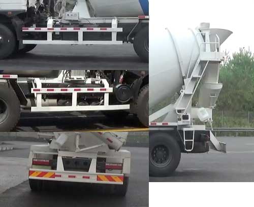 攪動容量為5.5立方米。選裝側面爬梯。側,后防護材料為Q235, 螺栓連接;后防護斷面尺寸60?50mm,離地高500mm。該車應裝有衛星定位功能的行駛記錄儀。隨底盤加裝ABS,ABS系統控制器型號/生產企業對應關系:3550X-1010/東風電子科技股份有限公司。