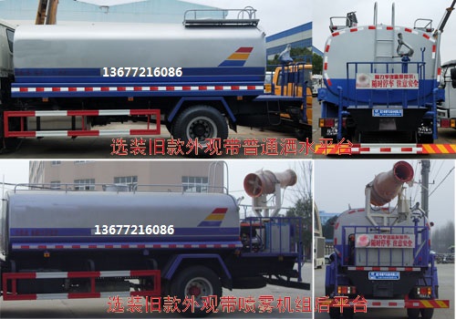1,僅選用4500mm和4800mm軸距底盤改裝。2,罐體有效容積11.81立方米,整車長/軸距/罐體外形尺寸(長×長軸×短軸)/后懸/離去角(°)的對應關系為(mm):8150/4500/4700×2300×1600/2300/13;8150/4500/4800×2300×1550/2300/13;8550/4800/5200×2300×1450/2400/11。3,防護材料:Q235B碳鋼,連接方式:左右側面及后下部防護均采用螺栓連接,后部防護斷面尺寸(mm):150×50,后部防護離地高度(mm):500。4,ABS系統生產廠家:生產廠家為廣州瑞立科密汽車電子股份有限公司,型號為CM4XL-4S/4M。5,該車可選裝:A,后部帶弧形噴霧和LED箭頭指示燈;B,后部帶LED箭頭指示燈;C,后部帶弧形噴霧裝置。6,專用裝置:罐體,主要用于灑水和園林綠化。7.安裝具有衛星定位功能的車輛行駛記錄儀。8,該車可選裝舊款普通灑水平臺外觀和舊款帶噴霧機組平臺外觀;當選裝帶噴霧機組時,軸距/罐體尺寸的對應關系為(mm):4500/4500×2300×1600,4800/4800×2300×1550。