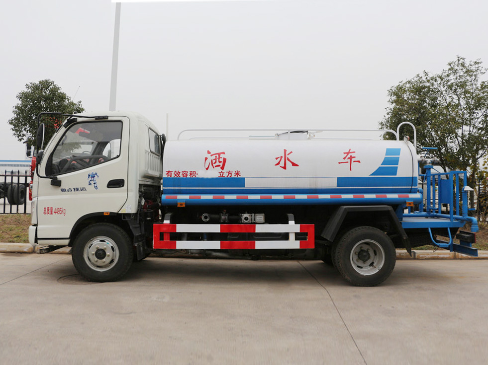 福田奧鈴5方灑水車水罐上裝配置:罐體容積可依據(jù)車輛公告制作灑水車,廠家標(biāo)準(zhǔn)罐體鋼板為4mm厚碳鋼Q235材質(zhì)(用戶也可選用不銹鋼板材),罐內(nèi)隔板具有防波作用,以減輕汽車行駛時罐體液體沖擊,罐體及整車外形尺寸按照公告。帶大功率專用灑水泵,可自吸自排,整車前沖、后灑、側(cè)噴、帶65消防接口,后平臺帶綠化灑水炮,灑水炮可全方位旋轉(zhuǎn),可連續(xù)調(diào)成直沖狀、大雨、小雨、毛雨;前封頭帶水位計(jì),后平臺主管路帶1付澆花接口,后爬梯。平臺后部帶小安全告知牌:“隨時停車,注意安全”,帶兩根水管及陰陽端。罐體顏色:上白下藍(lán),銀灰/銀藍(lán),罐體兩側(cè)噴“灑水車、綠化噴灑車”字樣,貼反光標(biāo)示。灑水車可加裝前沖后灑氣動閥駕駛室控制、可加裝霧炮機(jī)組發(fā)電機(jī)組噴霧降塵裝置、車頭可加裝推雪雪鏟、雪滾裝置街道、公路除雪等。