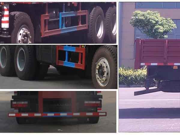 該車上裝選裝折臂式吊機;吊機型號,質量,最大起升載荷,整備質量,額定載質量分別對應為SQ3.2S:1150Kg/3200Kg/4250Kg/3835Kg;SQ3.2Z:1080Kg/3200Kg/4200Kg/3885Kg;SQ4S:1220Kg/4000Kg/4350Kg/3735Kg;SQ4Z:1250Kg/4000Kg/4380Kg/3705Kg。隨底盤選裝駕駛室。防護材料:Q235A碳鋼,連接方式:左右側面及后下部防護均采用焊接連接,后部防護斷面尺寸(mm):100?0,后部防護離地高度(mm):500。發(fā)動機型號:YZ4DA2-40, CY4102-CE4C, YN38CRD1,YCD4F2L-130對應油耗值分別為(L/100km):18.12;17.93;18.94;17.50.ABS型號為:VIE ABS-II,生產(chǎn)廠家為:上海萬捷汽車控制系統(tǒng)有限公司.