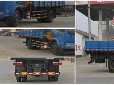 隨車起重運輸車,是一種通過液壓舉升及伸縮系統來實現貨物的升降、回轉、吊運的設備,通常裝配于載貨汽車上。一般由載貨汽車底盤、貨廂、取力器、吊機組成。載貨汽車底盤可選東風、解放、歐曼、斯太爾等各噸位。